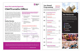 From print to digital to motion graphics, I bring a clean, modern point of view and efficient work ethic to any project I'm on. At Denver Film, I cover all design responsibilities for all film festivals, our year-round Movie Theater as well as live events like Film On The Rocks. As the Brand Manager, I lead the operational projects to bring the content and events together into a complete experience. I am a hard working, one-woman content-creating machine.